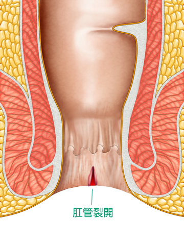 俗稱肛裂,是指肛管的皮膚裂開或潰瘍,通常發生於肛門出口正前方或正後方的位置,是一種常見的肛門疾病。患者於排便時會感到劇痛及流血現象,更可能出現腫脹、痕癢及有滲液流出。肛裂一般會分為: